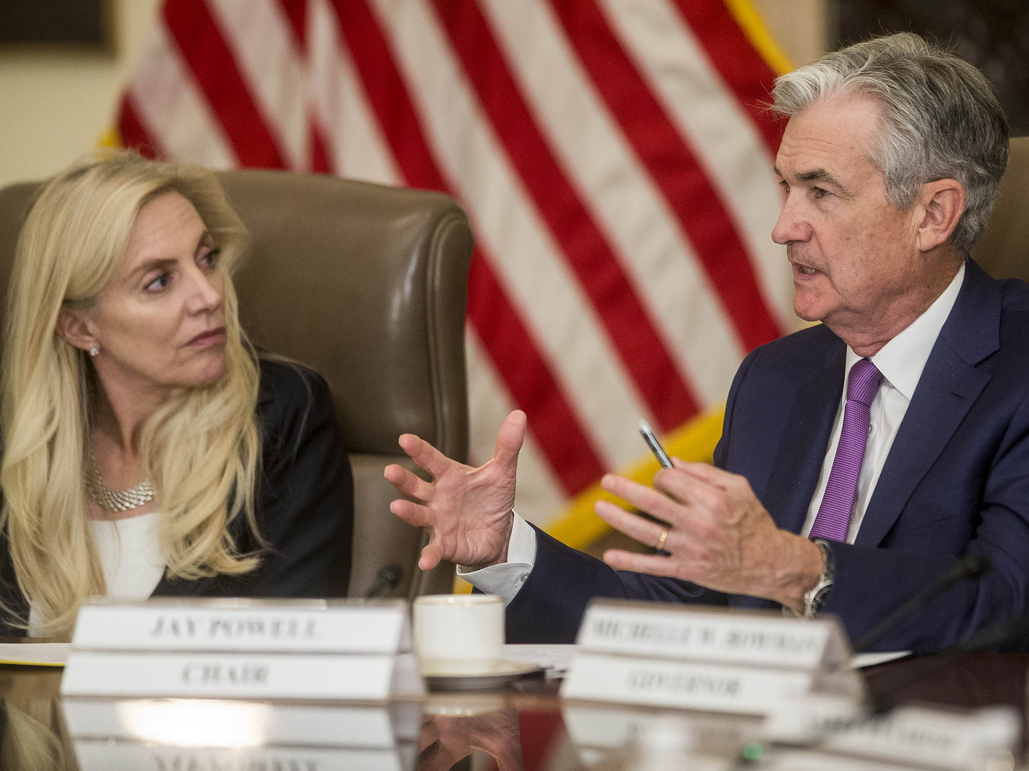 Lael Brainard 在 2019 年的一次活动中听着 Jerome Powell 讲话。摄影师:Zach Gibson/Bloomberg欢迎来到《每周要闻》,这是一份积极寻找反英雄的通讯。我是跨资产记者 Katie Greifeld。