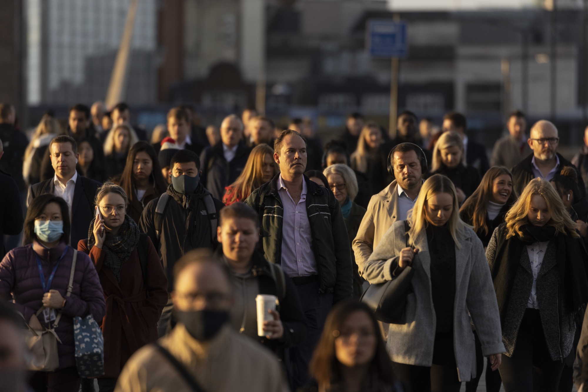 通勤者在10月25日前往伦敦市中心的伦敦桥。摄影师:丹·基特伍德/盖蒂图片社在伦敦,詹姆斯·古尔尼克经营着鲍尔恩牙科集团已有22年,为附近办公楼里的金融家和律师提供服务。作为卫生服务的员工,他的员工是英格兰封锁解除后最早回去上班的人之一。