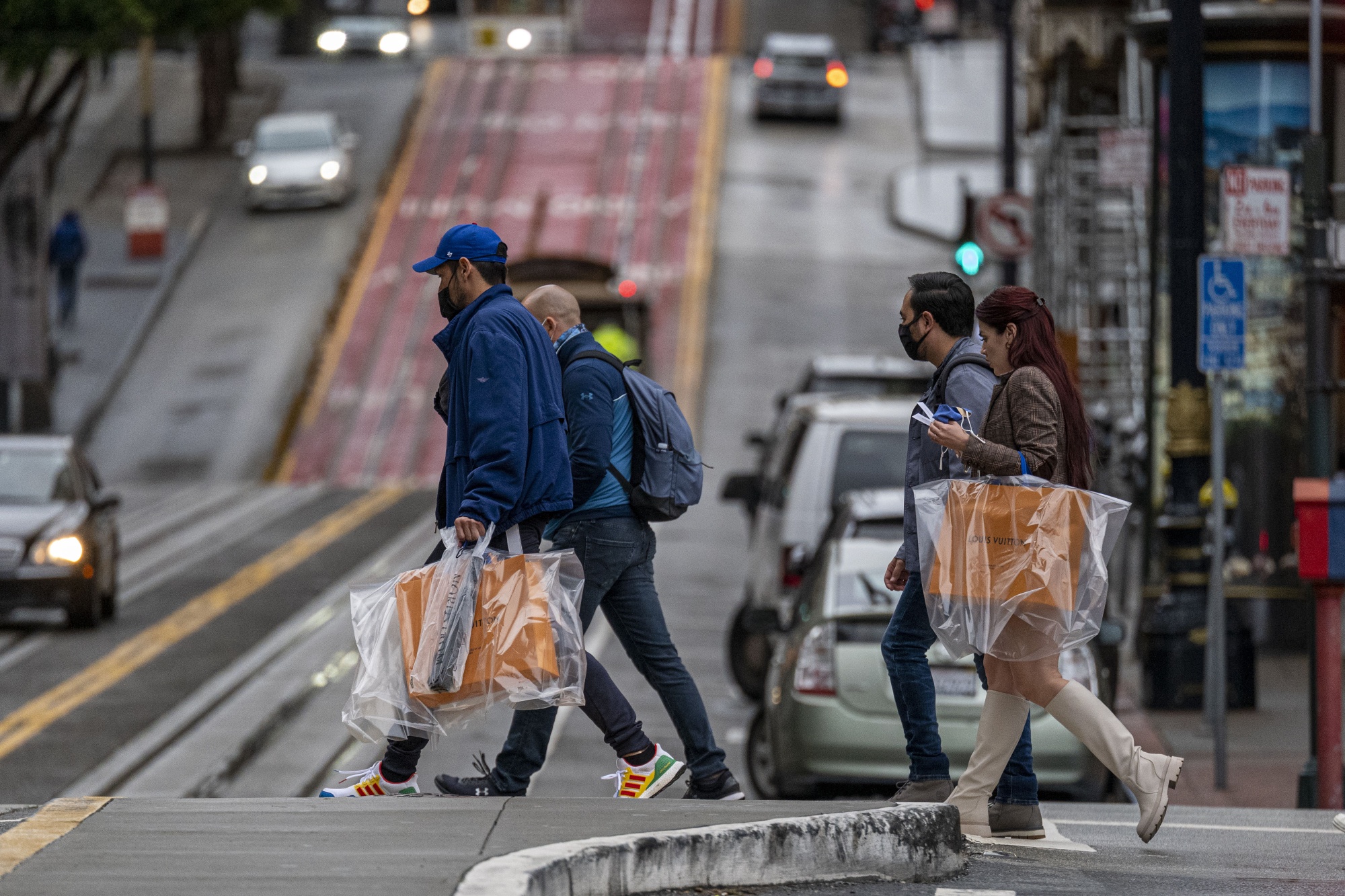 11月1日,旧金山的鲍威尔街上的购物者。摄影师:David Paul Morris/Bloomberg“我们现在看到的市中心的人比过去一年半看到的要多,”拥有Hi Neighbor餐厅集团的Ryan Cole说道。但是现在典型的工作日是周二到周四,周五和周六晚上9点的晚餐预订已经成为过去。