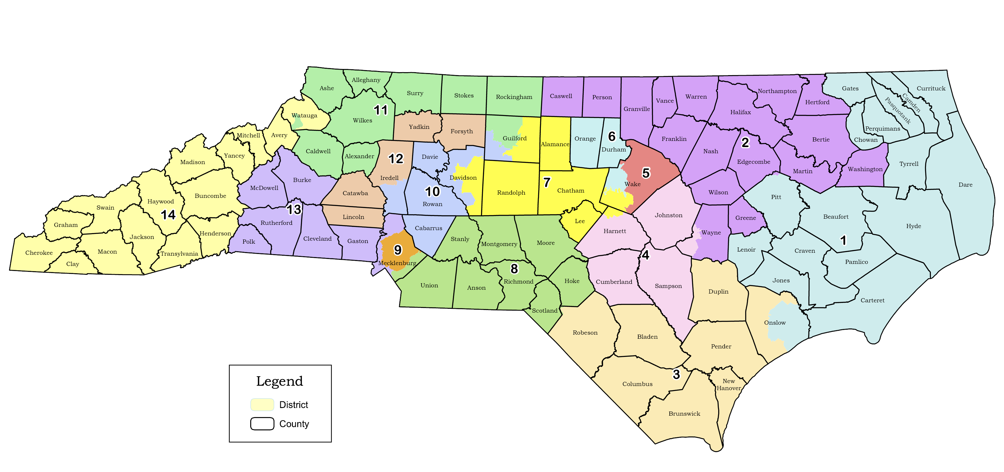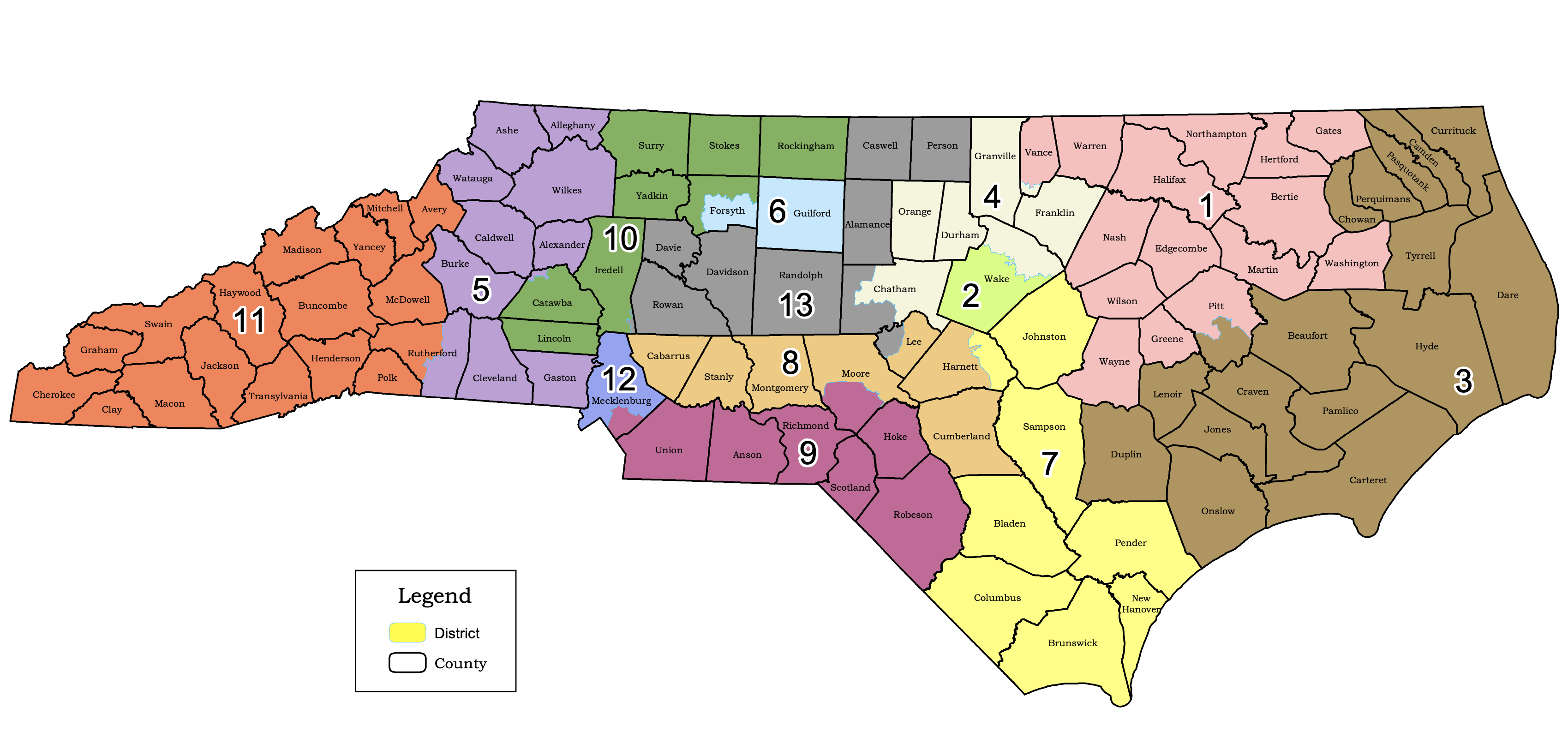 北卡罗来纳州的新国会选区图(底部显示,与顶部的当前图进行比较)可能会取消该州仅有的两名黑人国会议员之一的席位。北卡罗来纳州立法机构这一轮重划选区看到了前所未有的公民参与水平,公众评论和证词数量创纪录。这是否产生了任何影响?