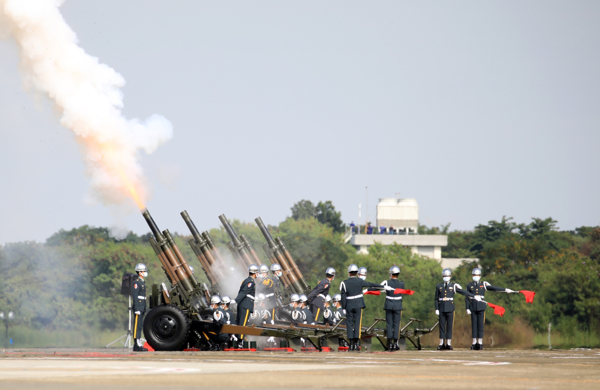 一支仪仗队在今天的仪式上开火,台湾空军正式投入升级战斗机。