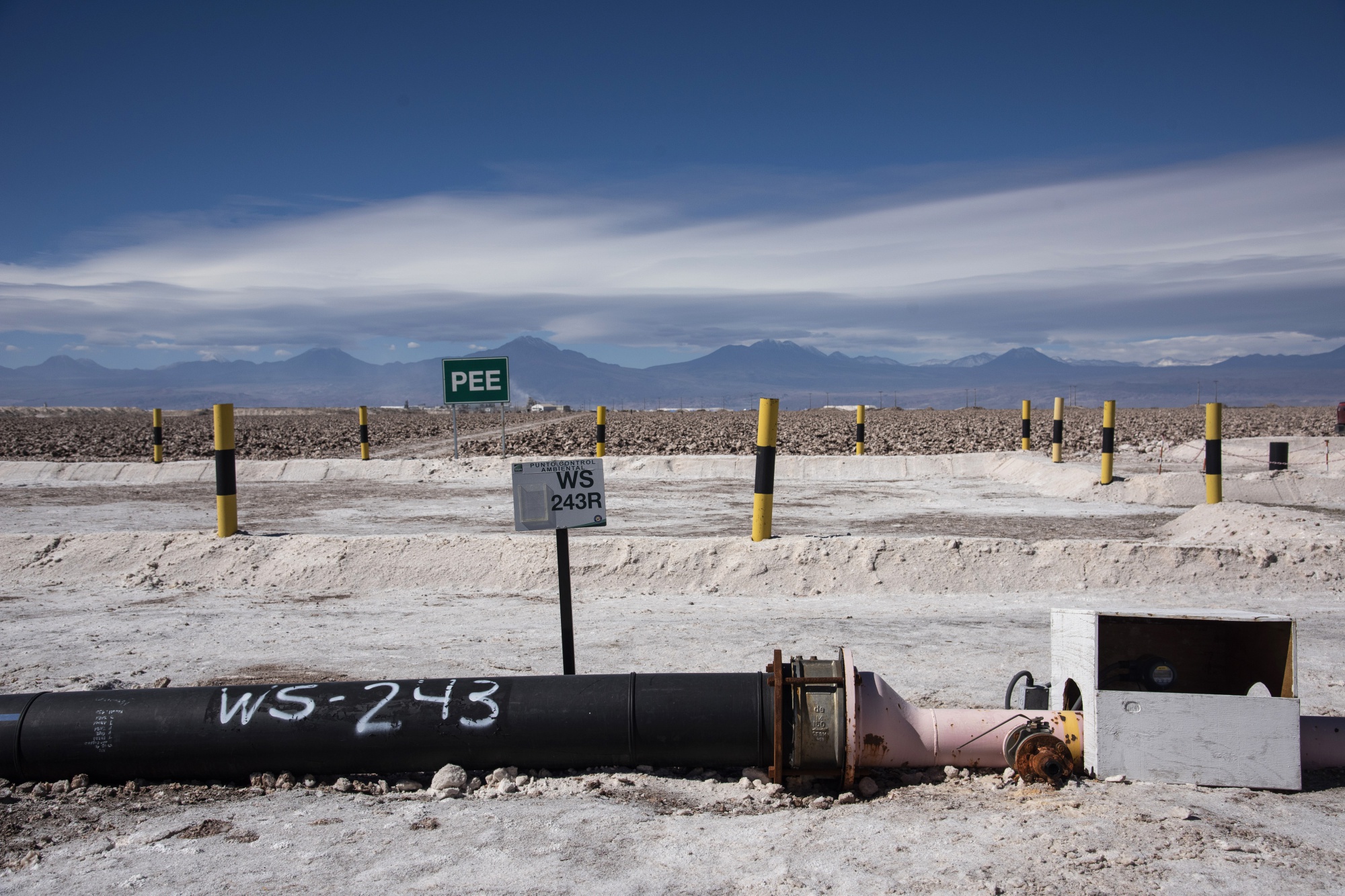 智利化工和矿业公司(SQM)锂矿的一个抽水管。