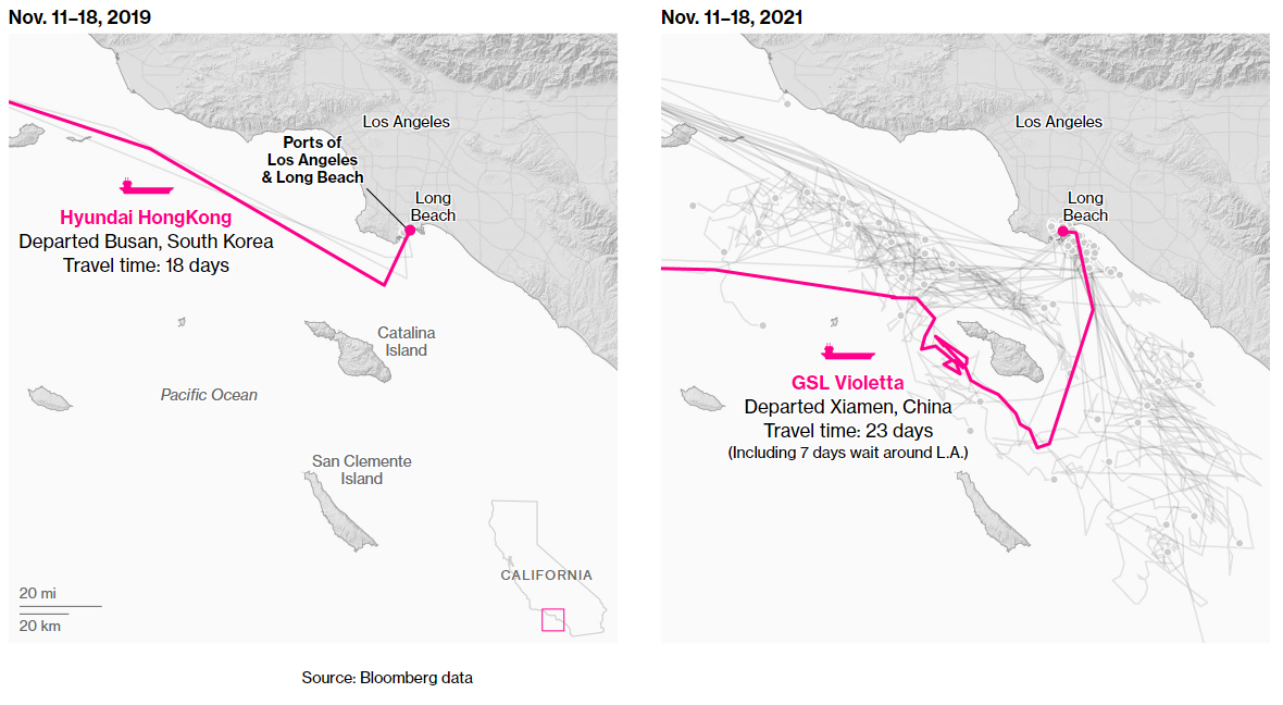 但最近,无论你提到什么供应链问题,这两个西海岸枢纽,占美国进口商品近40%的比例,都可能受到影响。