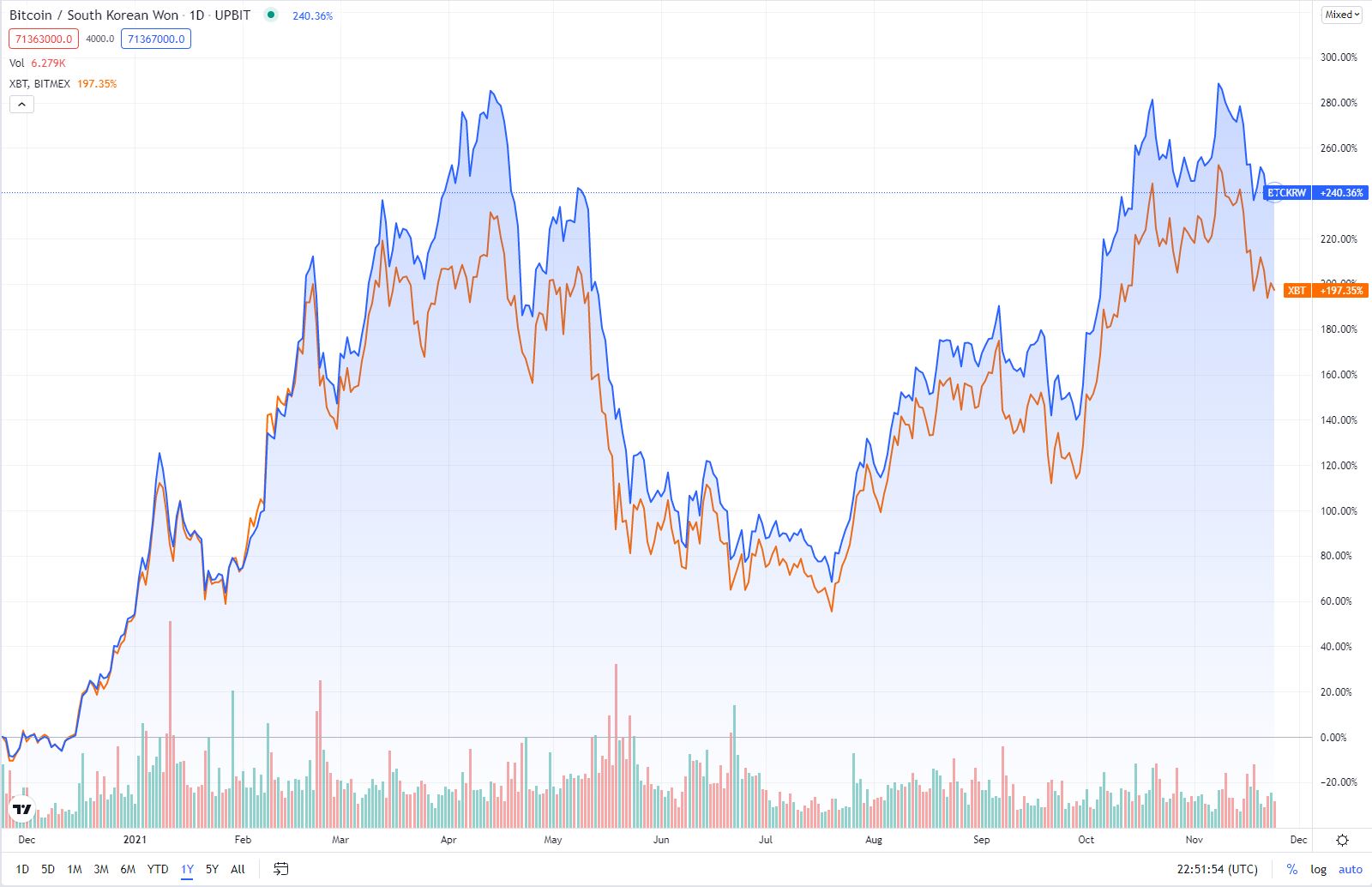 来源:TrendingView.com当然,问题就在于这正是为什么加密货币中存在这样的定价套利机会的精确原因。表面上去中心化的货币的一个巨大讽刺是,一旦在容易受到故障影响的交易所上交易,或者必须遵守关于KYC或资金进出国家的国家规定,实际上它是高度集中的。这就是为什么加密货币市场上最著名的定价差异已经持续存在这么长时间的原因之一。