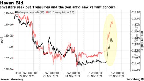 投资者抛售风险资产,涌向避险资产,因为新冠变种在全球市场上显现。对其缺乏信息推动交易员重新调整对央行加息预期,权衡变种可能对增长造成的冲击与通胀压力。