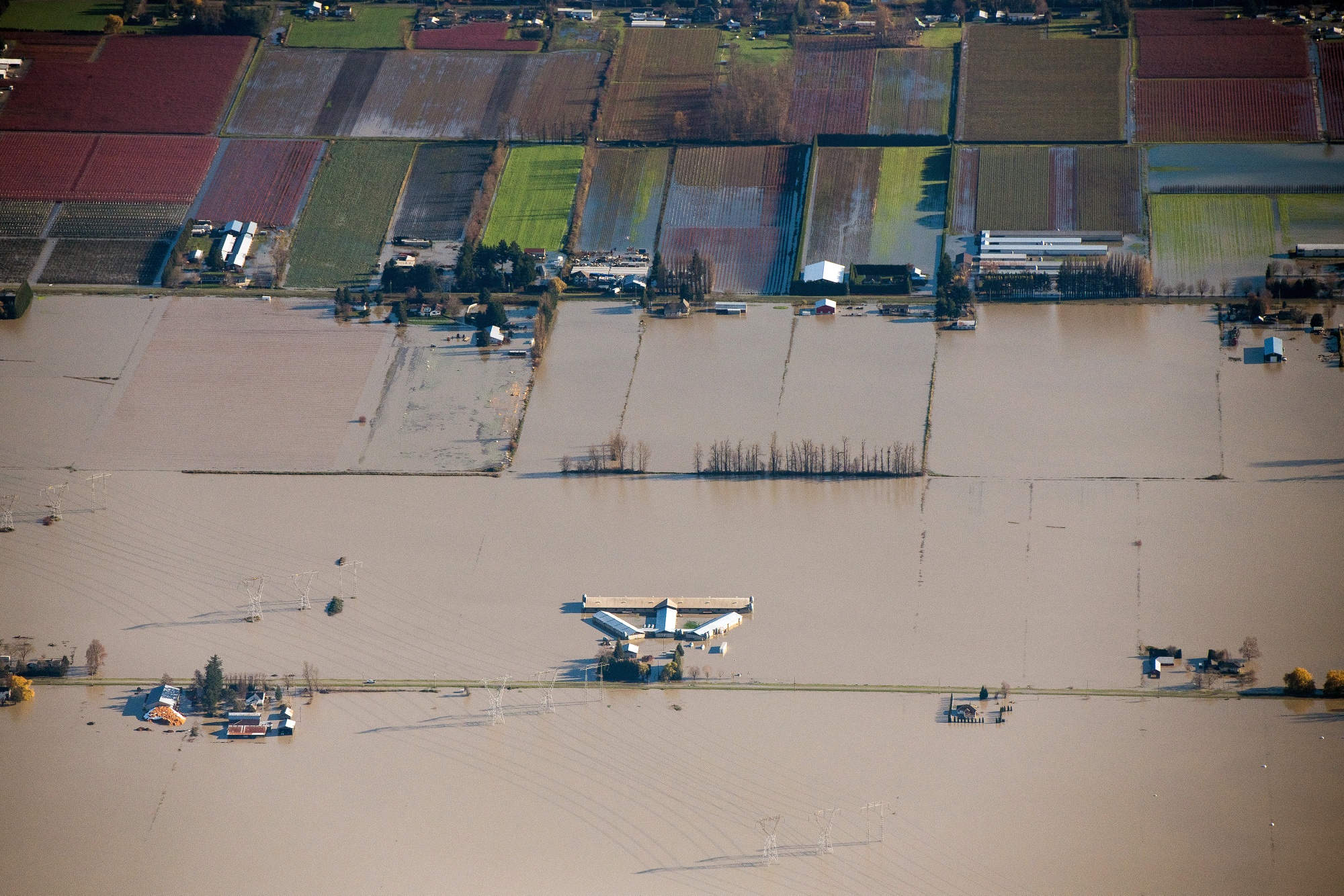 11月19日,不列颠哥伦比亚省阿伯茨福德附近的被淹农田摄影师:詹姆斯·麦克唐纳/彭博社