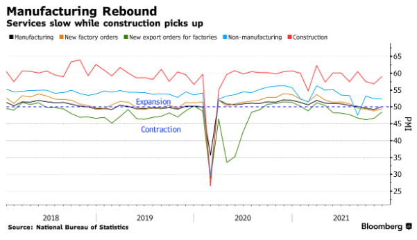 官方制造业采购经理人指数升至50.1,这是三个月来首次超过50的标志,表明生产扩张。非制造业指数,衡量建筑和服务行业活动的指标,略微下降至52.3。这两项指标均超出了经济学家的预期。
