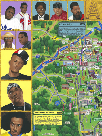 由Joseph Veazey绘制的一幅华丽插图的亚特兰大地图揭示了这座城市广阔的嘻哈传承。