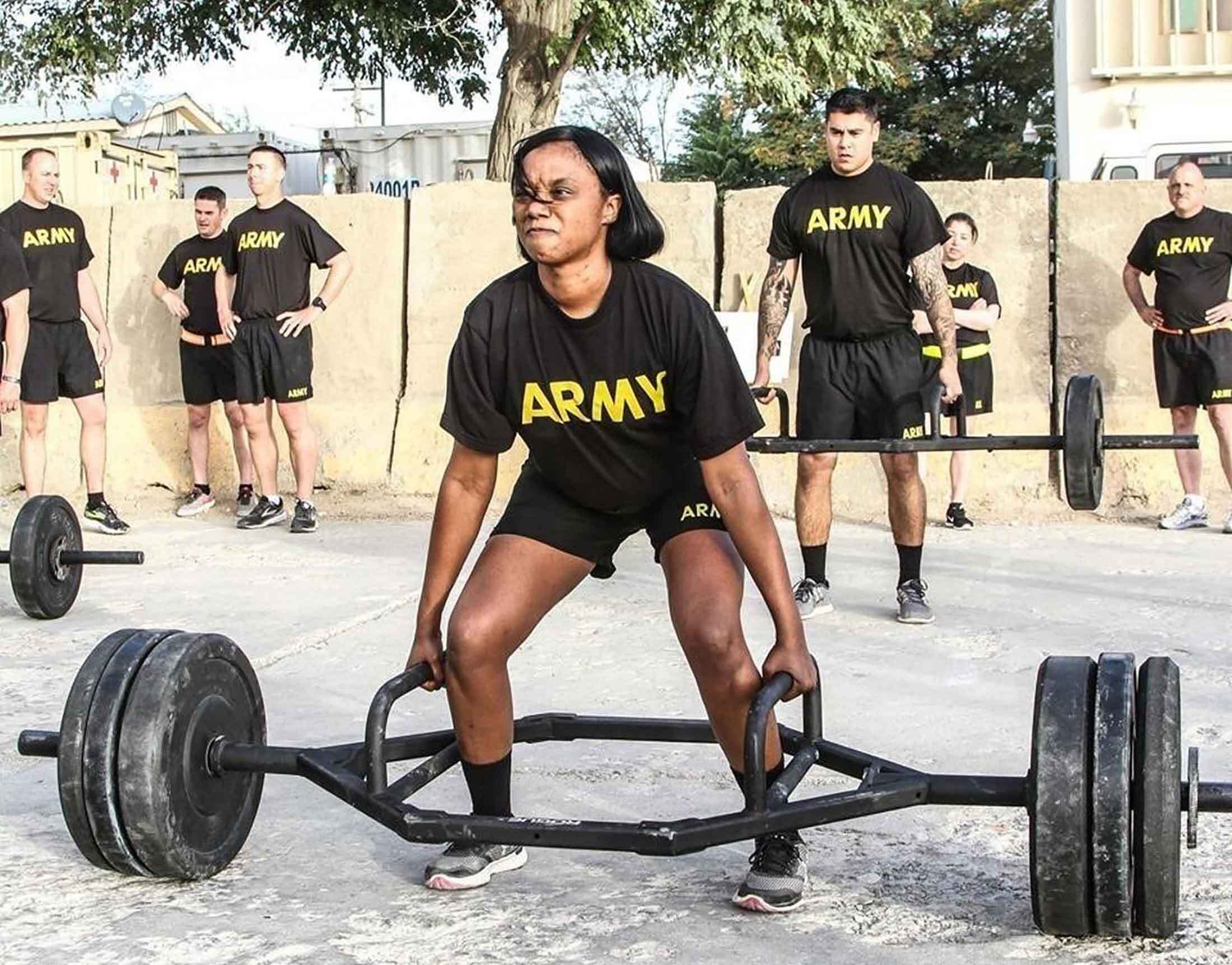 2018年,阿富汗巴格拉姆空军基地的陆军战斗健身测试举重项目。