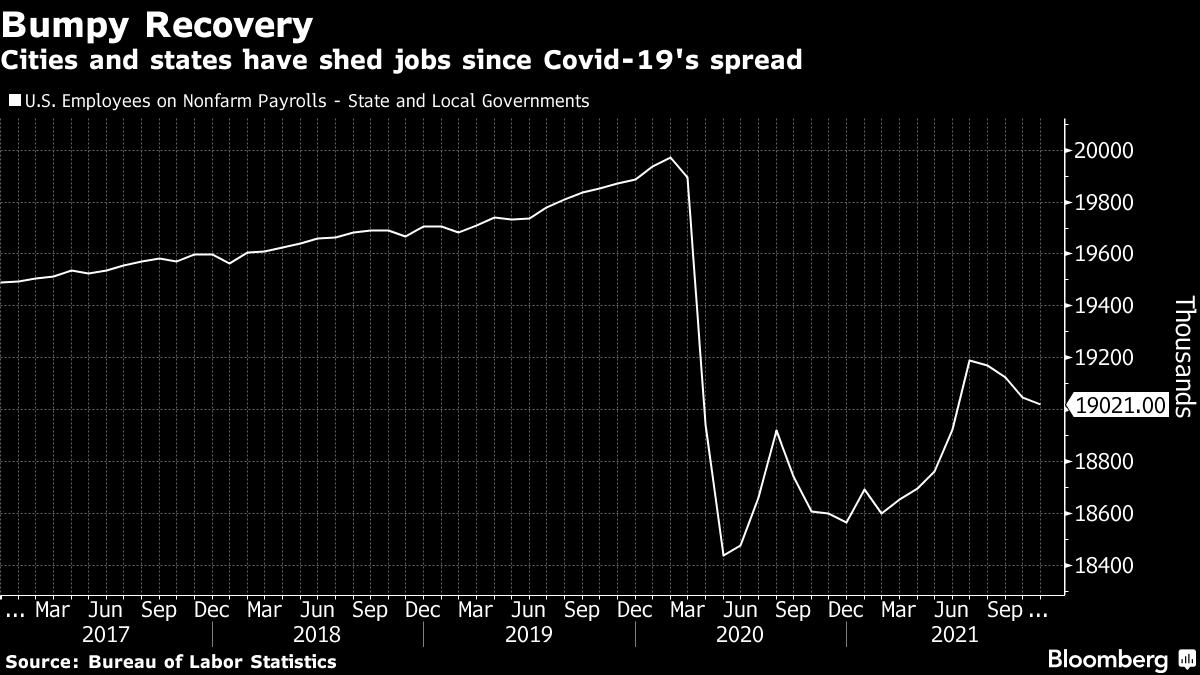 州和地方政府就业的疲弱反弹对于全国从疫情中复苏是个坏消息,因为根据经济分析局的数据显示,州和地方政府支出约占美国经济的11%。上个月全国的就业形势是复杂的。失业率降至4.2%,自2020年2月以来最低,当时为3.5%,但工资增长放缓。
