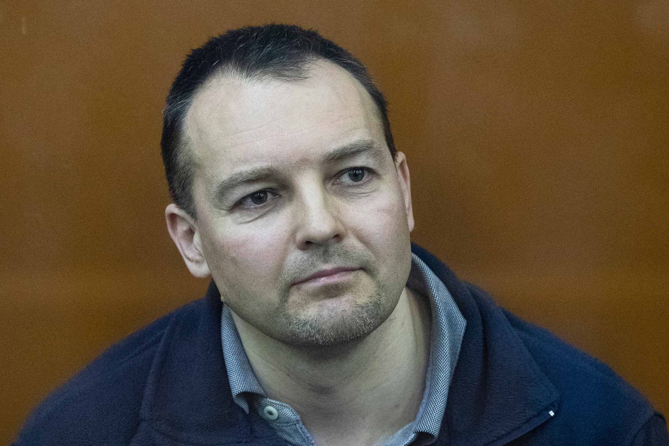 2019年莫斯科法庭审判中的Mikhailov。摄影师:Pavel Golovkin/AP 图片Mikhailov和Sachkov被指控的背叛部分根源于GRU和FSB之间长期冲突,这两个机构在许多领域竞争资源和声望,包括外国黑客行动,据三位熟悉此事的人士称。