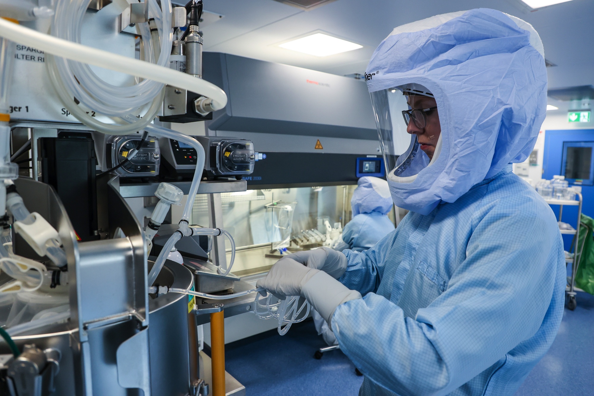 穿着生化防护服的员工在德国马尔堡的BioNTech实验室为mRNA疫苗生产的第一步——准备原材料。摄影师:Cyril Marcilhacy/Bloomberg“无论何时需要蛋白质,都可以应用,”哈佛大学干细胞生物学家、Moderna联合创始人Derrick Rossi说。“这可能涉及到6,000种遗传疾病、肿瘤学、癌症、突变基因。”