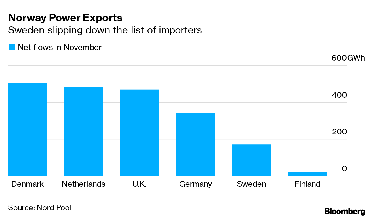 北欧电力供应争端升温。瑞典采取措施保护其电网,挪威开始通过通往德国和英国的大型新电缆增加电力出口。这些出口有时会从瑞典吸引能源,导致该国系统运营商削减其北欧边界的容量,阻止出口但也阻碍进口。挪威上周以切断向瑞典的输电来回应。芬兰和丹麦也依赖进口,他们希望欧盟终止使此类减少可能的监管豁免。