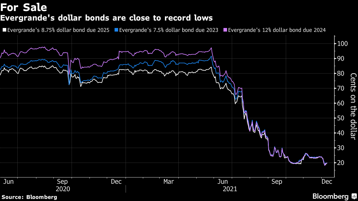 这家总部位于深圳的开发商债务的抛售非常激烈。恒大的美元债券接近历史最低点,约20美分。