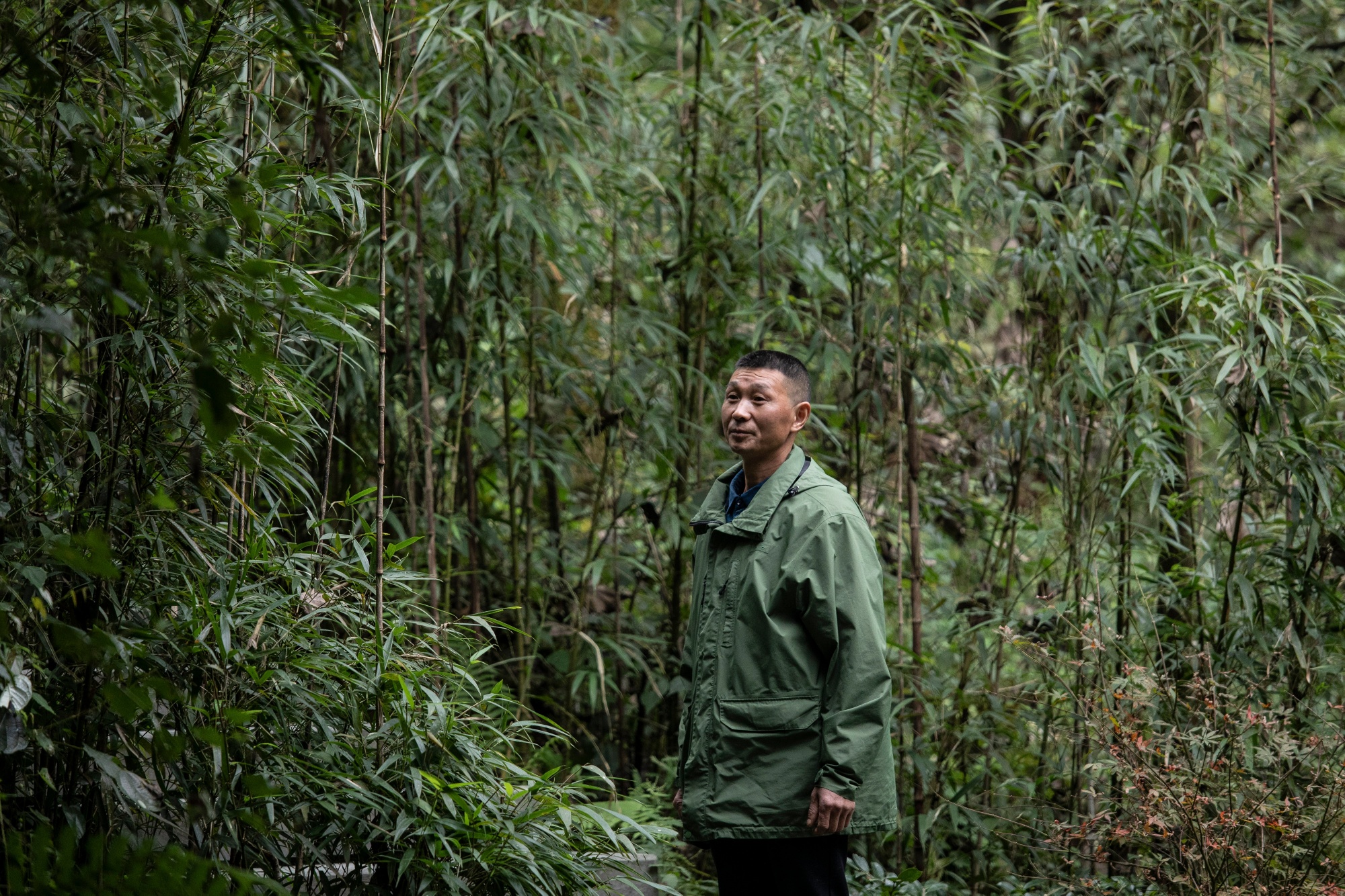 张登平是中国西南部四川省熊猫栖息地的护林员之一。每个月有两周的时间,他在一个与三名同事共用的宿舍里早上6点起床,穿上防水夹克和防滑鞋,然后前往森林。他在这个地区出生长大,很高兴他工作的山区被选为新的大熊猫国家公园的一部分。