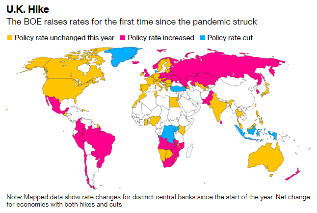 - 英格兰银行成为G-7经济体中首个在疫情时代提高利率的央行
