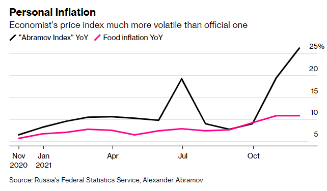 他在Facebook上发布了关于“阿布拉莫夫指数”的报告 —— 这是一个非科学的自制价格汇编,包括了粘性糖果和其他11种常规家庭购买品的价格,报告显示,11月通胀率达到了26.1%,远高于官方数据的8.4%。