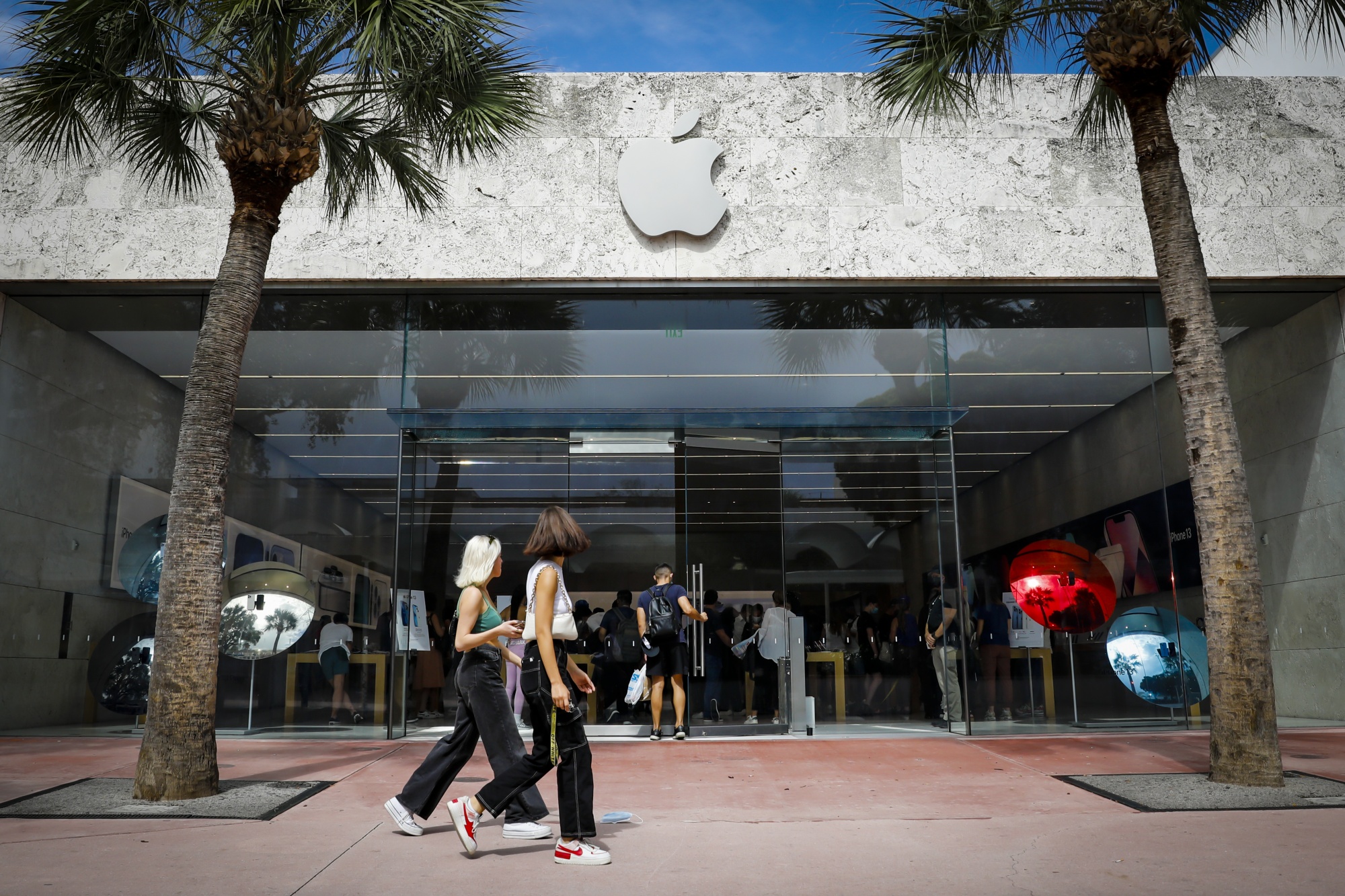 迈阿密的一家苹果商店。摄影师:Eva Marie Uzcategui/Bloomberg**苹果要求购物者戴口罩,并暂时关闭商店。**新冠疫情的再次爆发也促使苹果零售店做出调整。该公司现在要求所有美国门店的购物者戴口罩。这一政策之前仅适用于公司约一半的美国门店。苹果还将再次限制店内人数。由于员工中新冠病例激增,该公司不得不暂时关闭几家门店(迈阿密的Brickell City Centre门店;马里兰州安纳波利斯的门店;夏威夷的一个地点;俄亥俄州的Eton门店;休斯敦的一家门店;以及渥太华市中心的门店)。