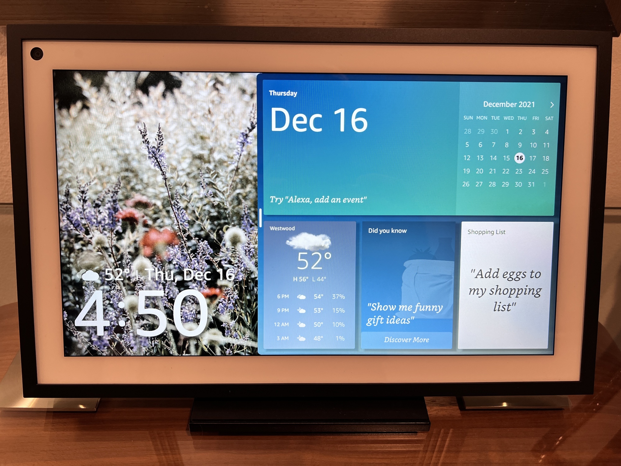 扬声器和麦克风也提供了出色的体验,无论是用于Alexa语音控制,观看视频还是听音乐。我很喜欢Echo Show 15的多功能性:它可以像图片框一样固定在墙上,也可以放在支架上,无论是纵向还是横向位置。