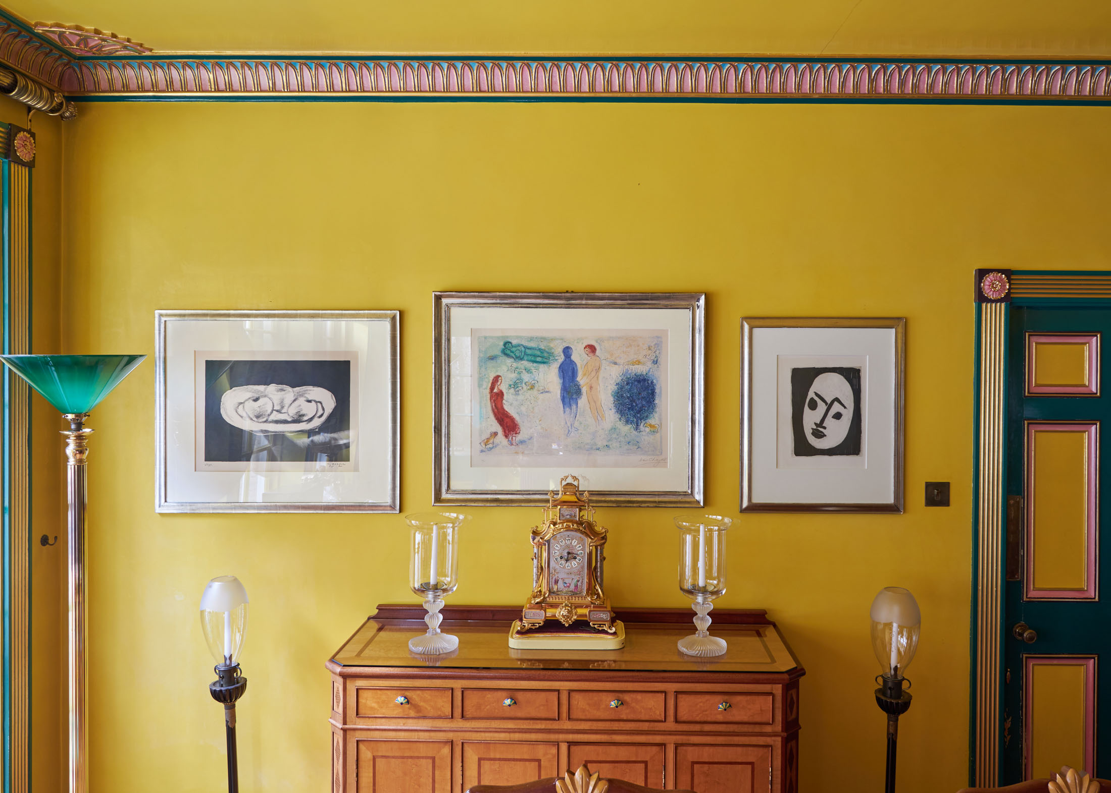 餐厅,带有粉绿色的饰条细节,在苏富比拍卖前拍摄。这款来自1870年代的法国镀金和青铜时钟以30,480英镑的价格售出。摄影师:巴尼·亨德尔奥斯汀说,计划是进行拍卖,然后考虑出售这所房子。“拍卖是巨大的。我不确定此刻我会有什么感受。但我意识到时机已经到了。” 奥斯汀说,她现在独自一人住在这所房子里,她的孩子们已经长大并住在别处,她觉得是时候开始她生活中的新篇章并继续前行。在经历了一个忙碌的一年后,她说这将是她最后一次采访。