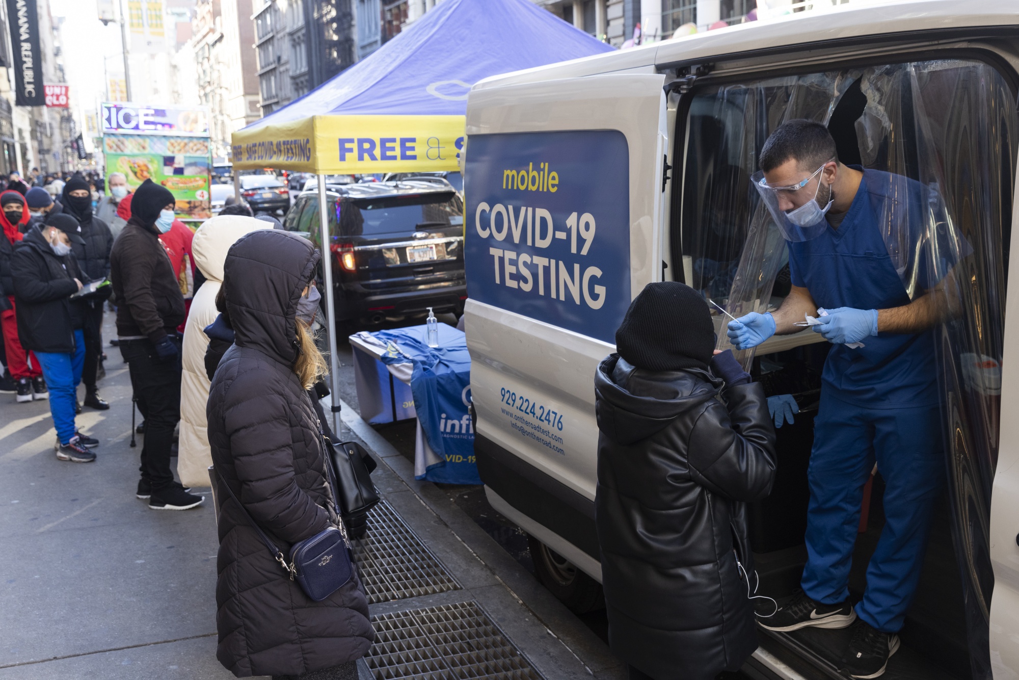 一名医护人员在美国纽约市SoHo社区的移动检测点为一名患者进行新冠病毒检测,拍摄于2021年12月20日。摄影师:Angus Mordant/Bloomberg### 你应该阅读的内容