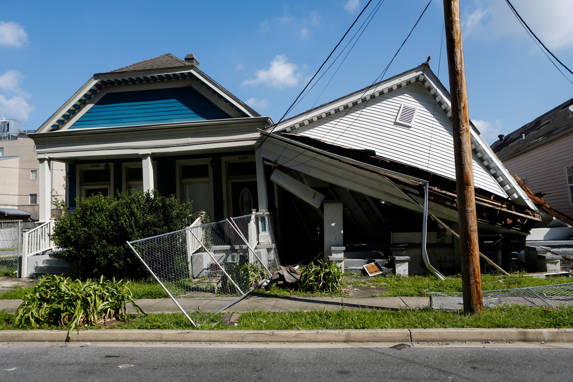 飓风艾达在美国路易斯安那州新奥尔良倒塌房屋的残骸,日期为9月3日。