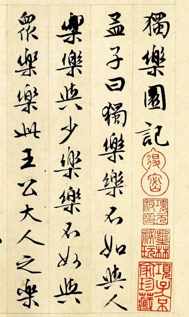 这篇《独乐园记》讲的是他自己“先生归,杜门不复与世事,以翰墨自娱”,过着那种“人望之若神仙”的生活。 正是这种闲逸的心态,再加之他对于书法多年的探索,形成了自己一种温婉而秀逸的书风,这种书风影响了后世300多年!