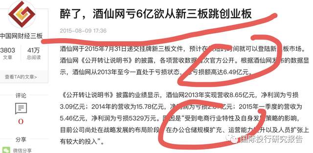 而现在酒仙网要来创业板融资15亿,你们懂的!大胆说,假如这次IPO不成功,酒仙网就可能真的如创始人郝鸿峰当年说的那样:变成暴风影音了。