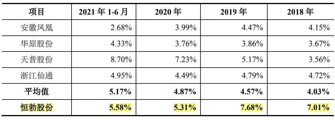 当然,恒勃股份在守护自身的市场地位方面也很尽力,报告期内研发费用率始终保持在5%以上,高于行业平均水平。