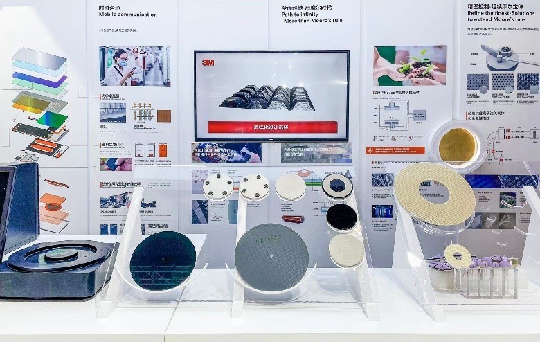 在第四届进博会上,3M中国首发了CMP Trizact™研磨垫,利用3M独有的微复制技术,以小面积创造大效益,为高级技术节点的半导体制造提升耗材使用效率。