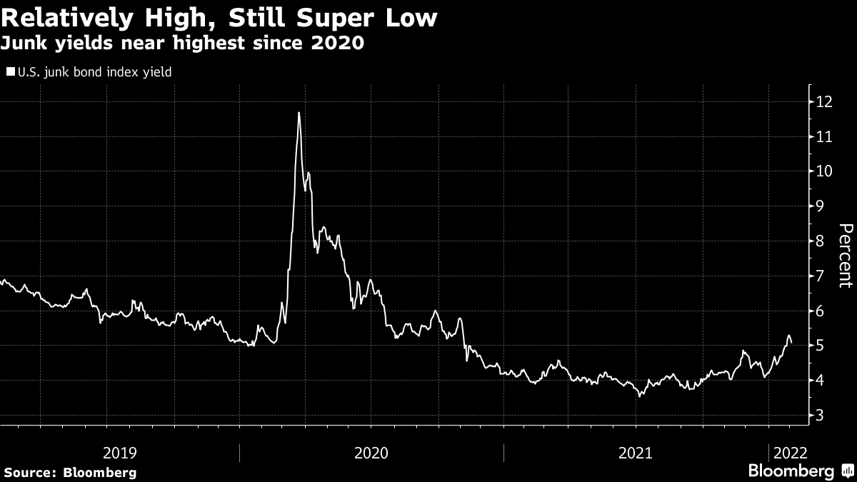 试图规划美联储的政策路径也可以解释为什么在2021年繁荣之后,堕落天使交易所交易基金--跟踪最近被降级为投资级别的债务--开始失宠。两个主要产品,46亿美元的范埃克堕落天使高收益债券ETF(代码为ANGL)和43亿美元的iShares美国堕落天使美元债券ETF(FALN),仅在1月份就流失了近13亿美元。彭博数据显示,这几乎占了它们2021年总流入的四分之一。