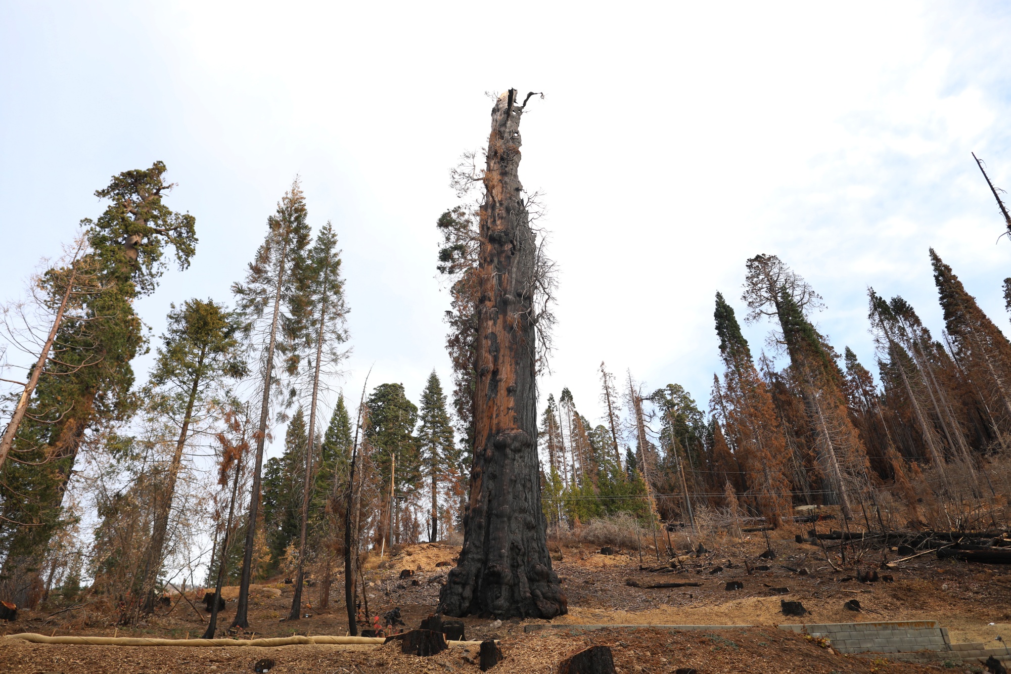 加利福尼亚州塞奎亚国家森林Castle Fire后的一棵倒下的巨型红杉树。