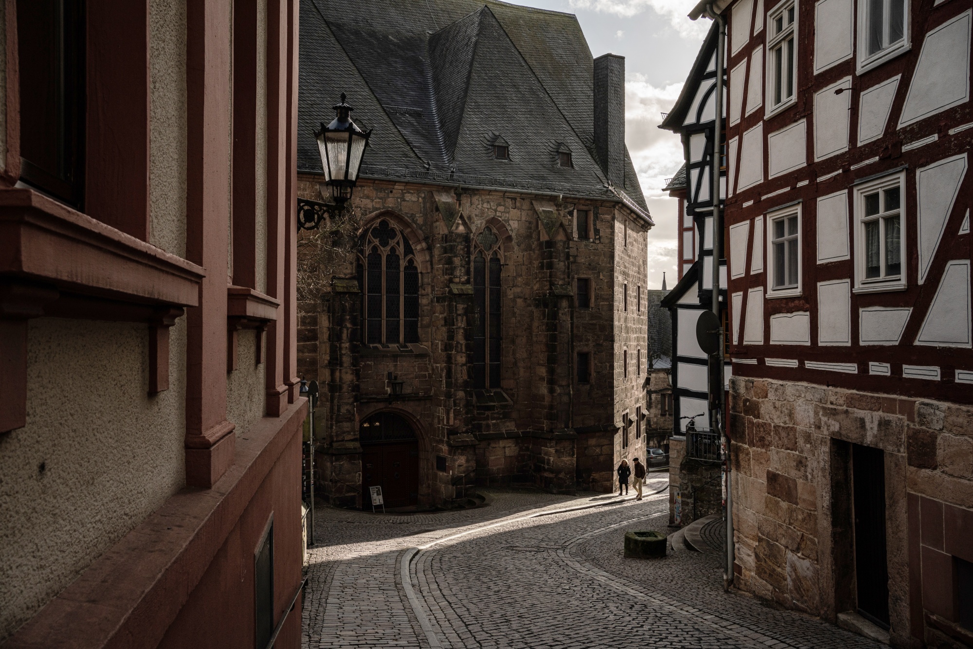 德国马尔堡历史中心的一条鹅卵石街道,2月2日。