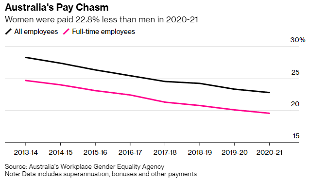也不是所有的消息都是坏消息。性别之间的薪酬差距在2021年3月的一年内略有缩小 — 仅缩小了半个百分点。并且在周四,议会通过了一项旨在提高妇女的养老金储蓄的法案(妇女的退休储蓄平均比男性少28%)。尽管如此,澳大利亚的女性首席执行官数量实际上下降了,在2018年至2021年间。在许多方面,这里的性别不平等甚至更加明显,仅仅靠时间的推移是不足以改变这种情况的。—Alyssa McDonald