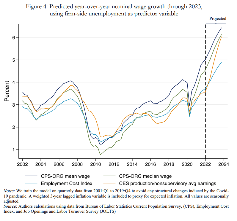 经济学家发现,失业率是工资通胀的更好预测指标,而空缺率和辞职率对工资通胀有着相当大的预测能力。