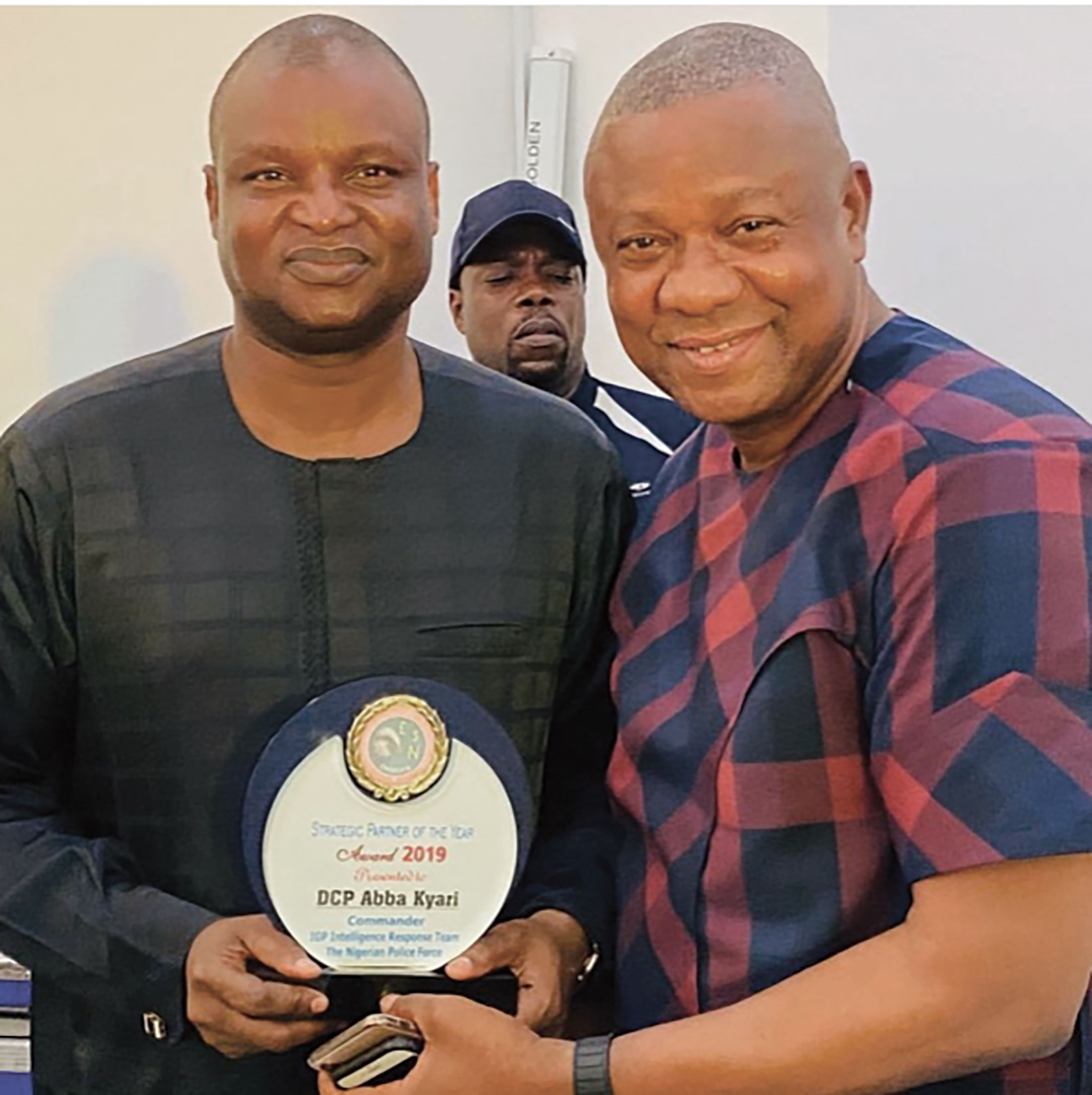 Abbas和紫色劳斯莱斯。来源:Hushpuppi Instagram那个星期,距离3,000英里之外,尼日利亚警察副局长阿巴·卡亚里,也被称为@abbakyari75,摆出了不同的姿势。 卡亚里的风格完全是商务风格:坐在堆满文件的桌子前,穿着蓝色的达希基(Dashiki),戴着他随身携带的AirPods。 两名便衣副手站在他两侧,他有意地看向摄像头。 他的标题同样干燥:“今天和我的高级同事们在一起。” 在他身后的墙壁上排列着满满一架架装满他获得的数十个奖项。 在长达十年的一系列抓捕行动中,当时44岁的卡亚里抓获了绑架犯,解救了学童,并追捕了刺客。 尼日利亚警察服务委员会的成员罗米·莫姆(Rommy Mom)说:“他是明星。” 罗米·莫姆是尼日利亚警察服务委员会的成员,这是一个负责监督警察工作的独立机构。 在长达数年的暴力犯罪和恐怖主义潮流中,尼日利亚媒体给卡亚里取了绰号,称他是该国情报反应小组(IRT)的负责人,超级警探。