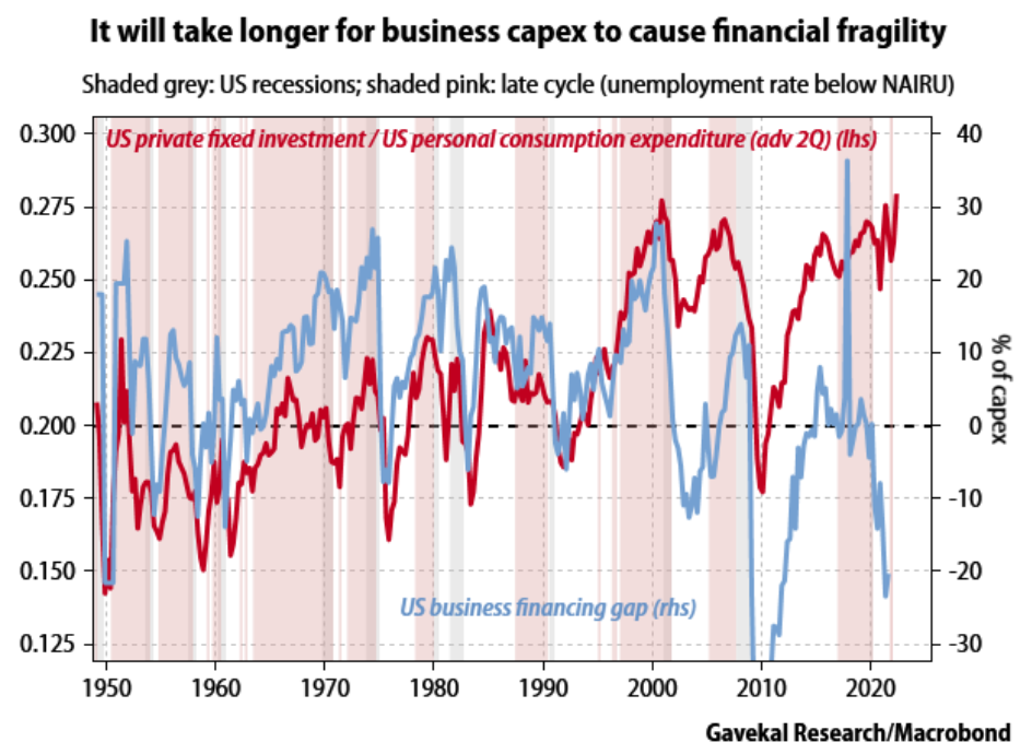 “与以往周期相比,这一次美国经济将获得资本支出的好处,而不会遭受增加的财务脆弱性的副作用,至少在短期内是这样,” Tan写道。