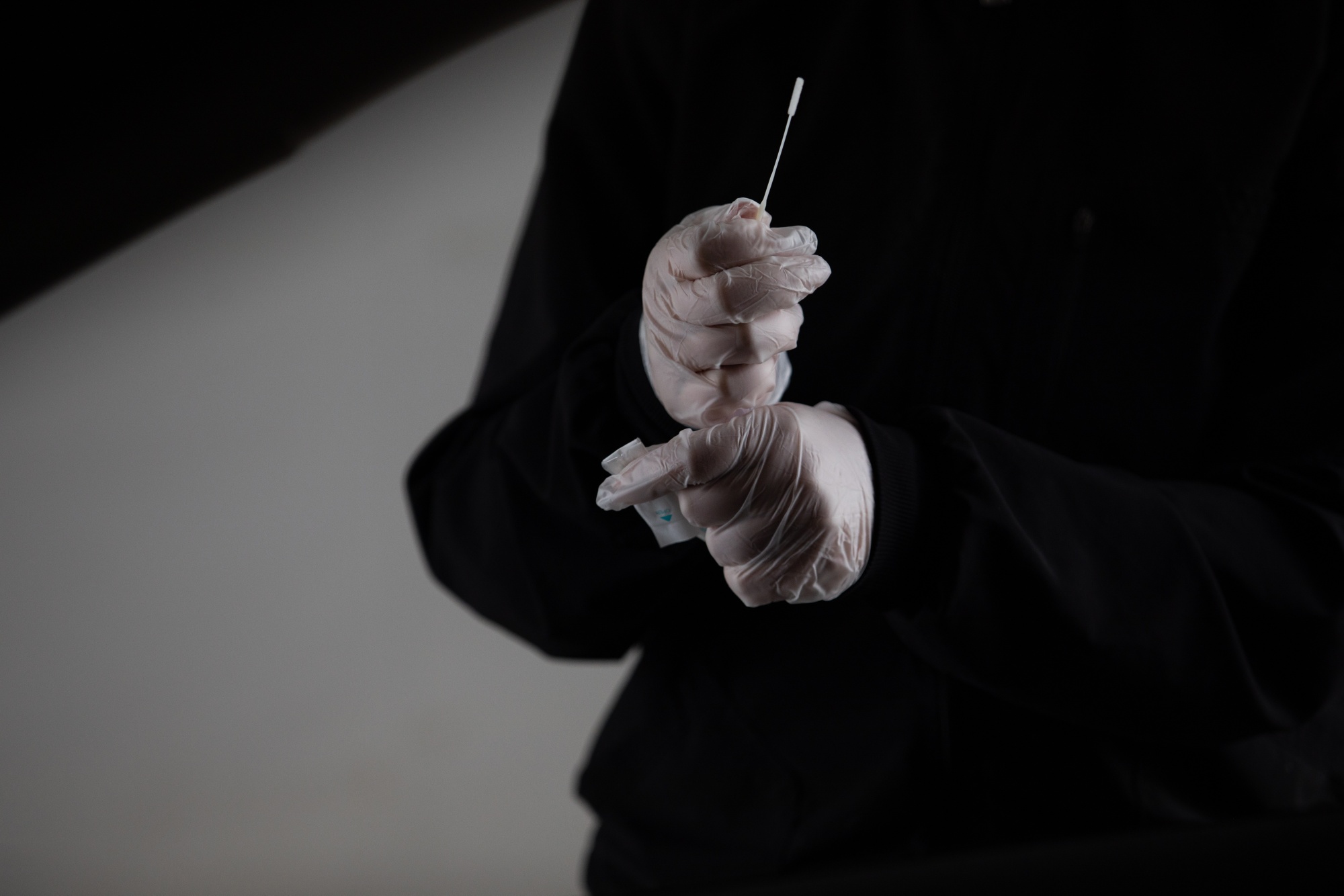 一名工作人员在密歇根州卫生专业人员的驶入式新冠病毒检测点准备拭子检测。摄影师:Emily Elconin/Bloomberg### 你应该阅读的内容