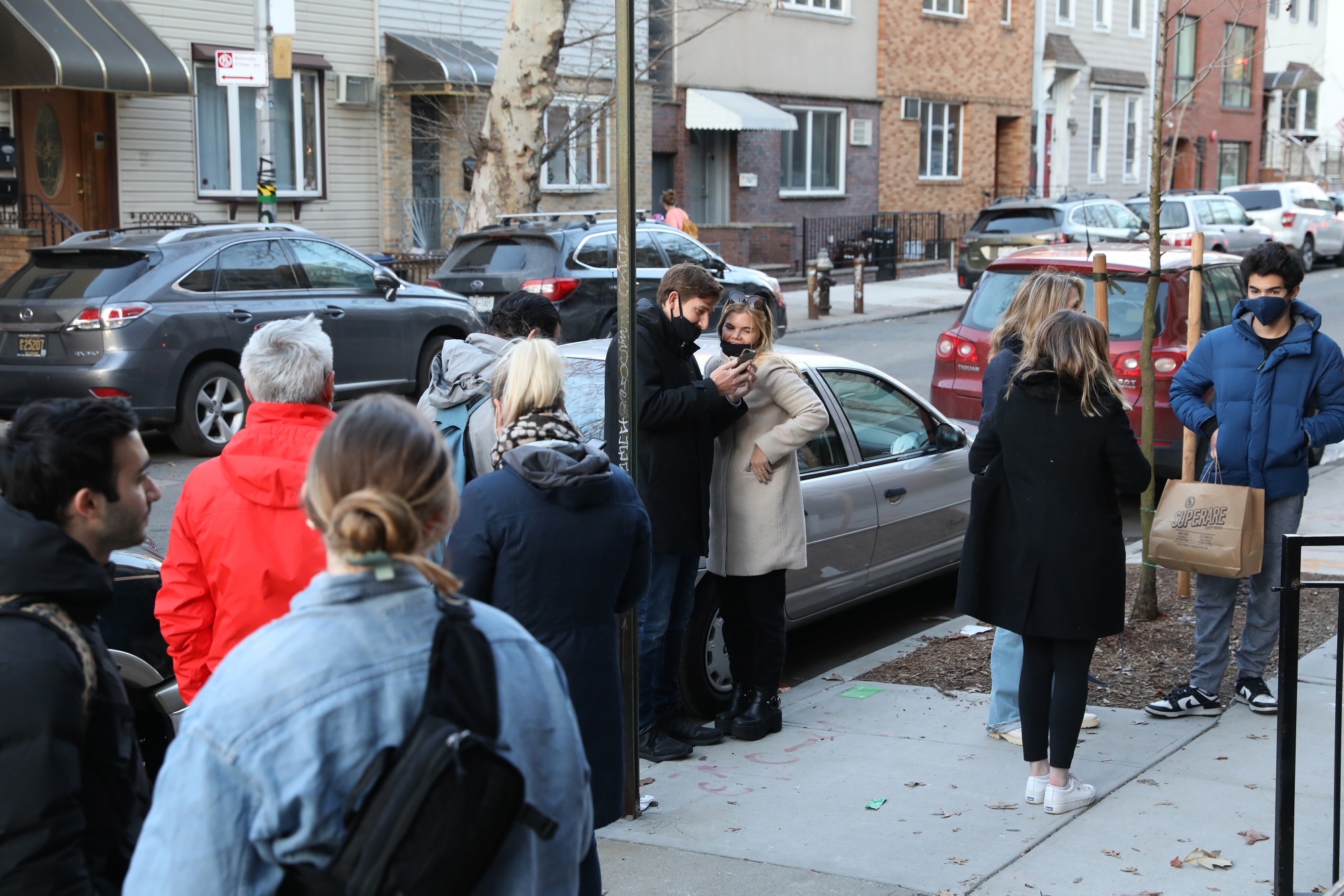 人们在布鲁克林威廉斯堡230 Withers Street的一处出租公寓开放日前等待进入。“目前的租赁市场在速度上有所不同,”伯克希尔哈撒韦家居授权房地产销售人员Ava Howard说。“这完全取决于谁最快,谁愿意支付最多。现在就像购买一套房子。竞争如此激烈。”
