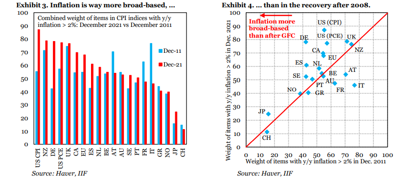 中央银行需要提高利率的速度可能取决于通货膨胀的普遍程度。