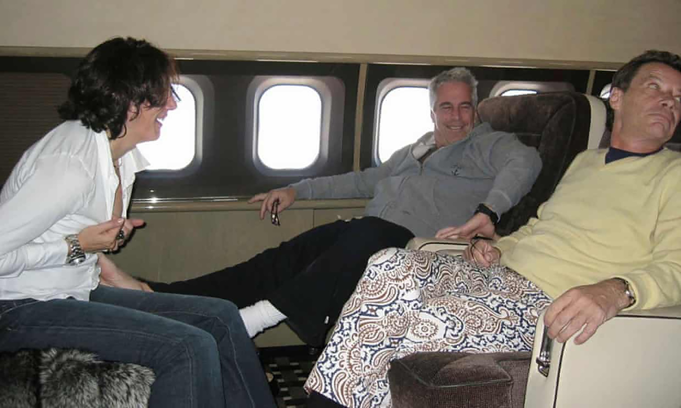 Jean-Luc Brunel,右,与 Jeffrey Epstein 和 Ghislaine Maxwell 一起乘飞机。来源:SDNY