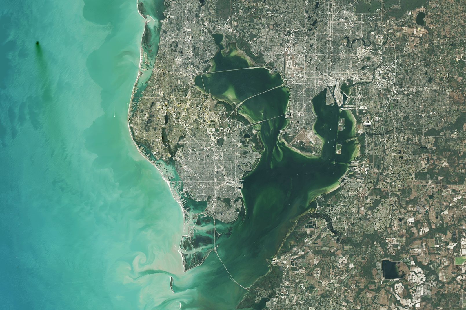 佛罗里达州圣彼得堡/克利尔沃特/坦帕。来源:Landsat 9/美国地质调查局/美国国家航空航天局自1972年首次任务启动以来,Landsat已经发生了巨大变化,而生成的图像免费提供是相当近期的事情。“即使在2000年代中期,你也必须购买图像,而且是通过CD-ROM提供的,”美国地质调查局的Landsat项目科学家克里斯·J·克劳福德说道,他从2005年开始使用Landsat数据。
