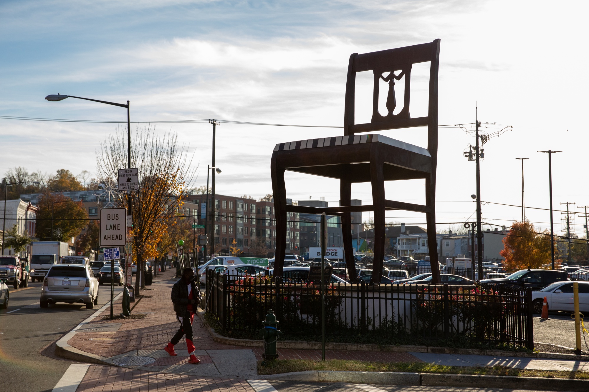 大椅子,是华盛顿特区安纳科斯蒂亚的一个当地艺术装置。在疫情爆发的第一年,该社区是几个可以通过基本收入试点项目获得现金补助的社区之一。