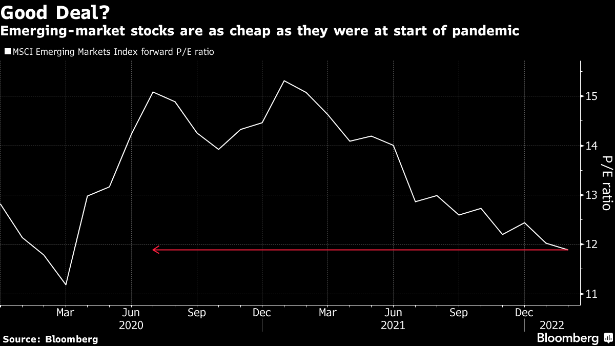 尽管估值跌至自2020年4月以来的最低水平,股票分析师们仍在提高对新兴市场公司的前景。随着美国和欧洲的增长放缓,巴西和中东等国家的前景更加光明,因为地缘政治紧张局势持续推高大宗商品价格。低估值可能吸引寻找替代昂贵发达市场股票的投资者。