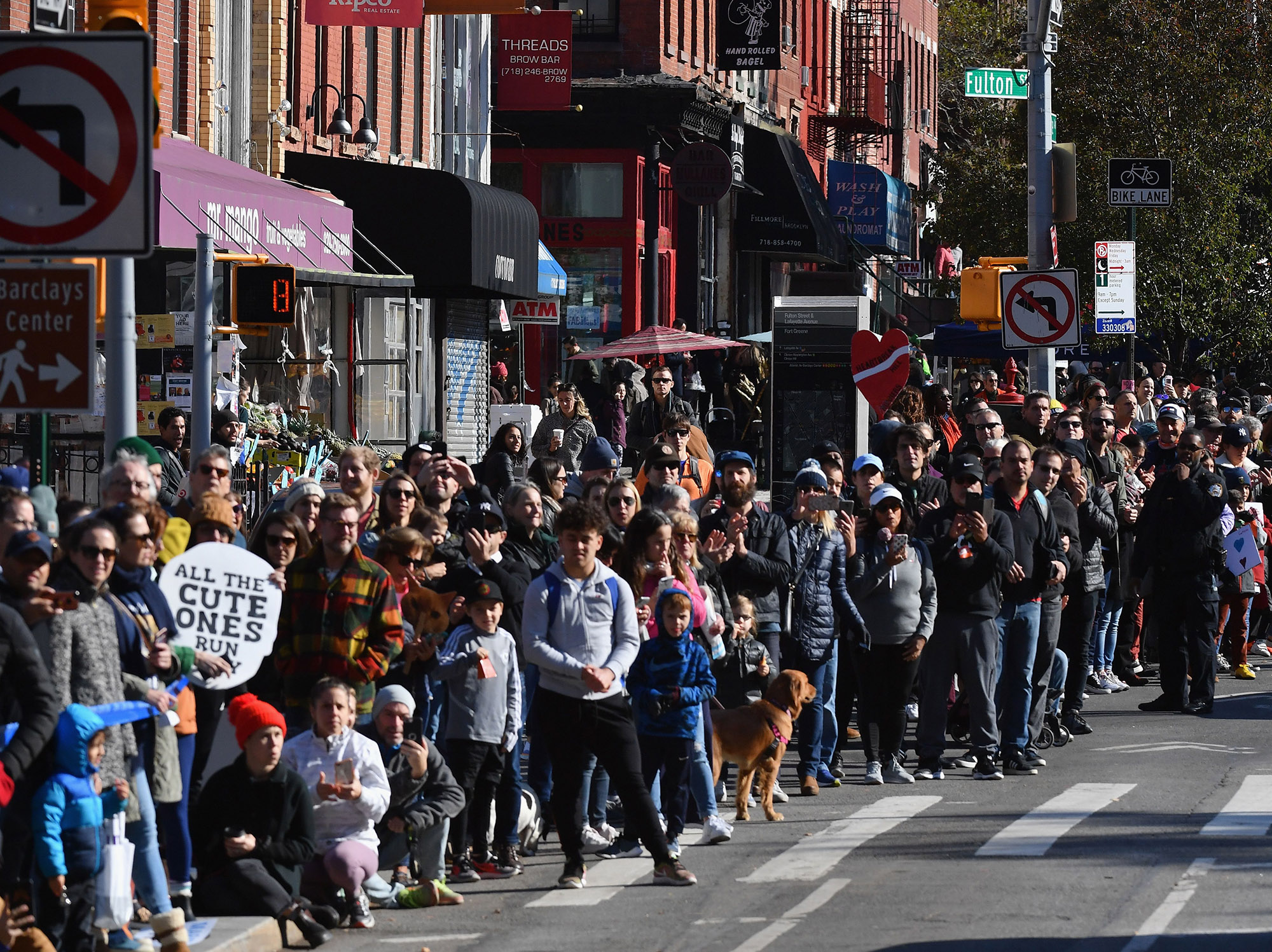 布鲁克林的人们观看2019年TCS纽约城市马拉松。