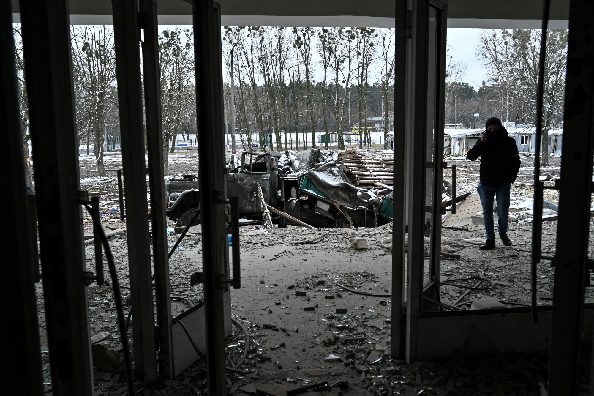 基辅外布罗瓦里市的一处被摧毁的军事设施,3月1日。