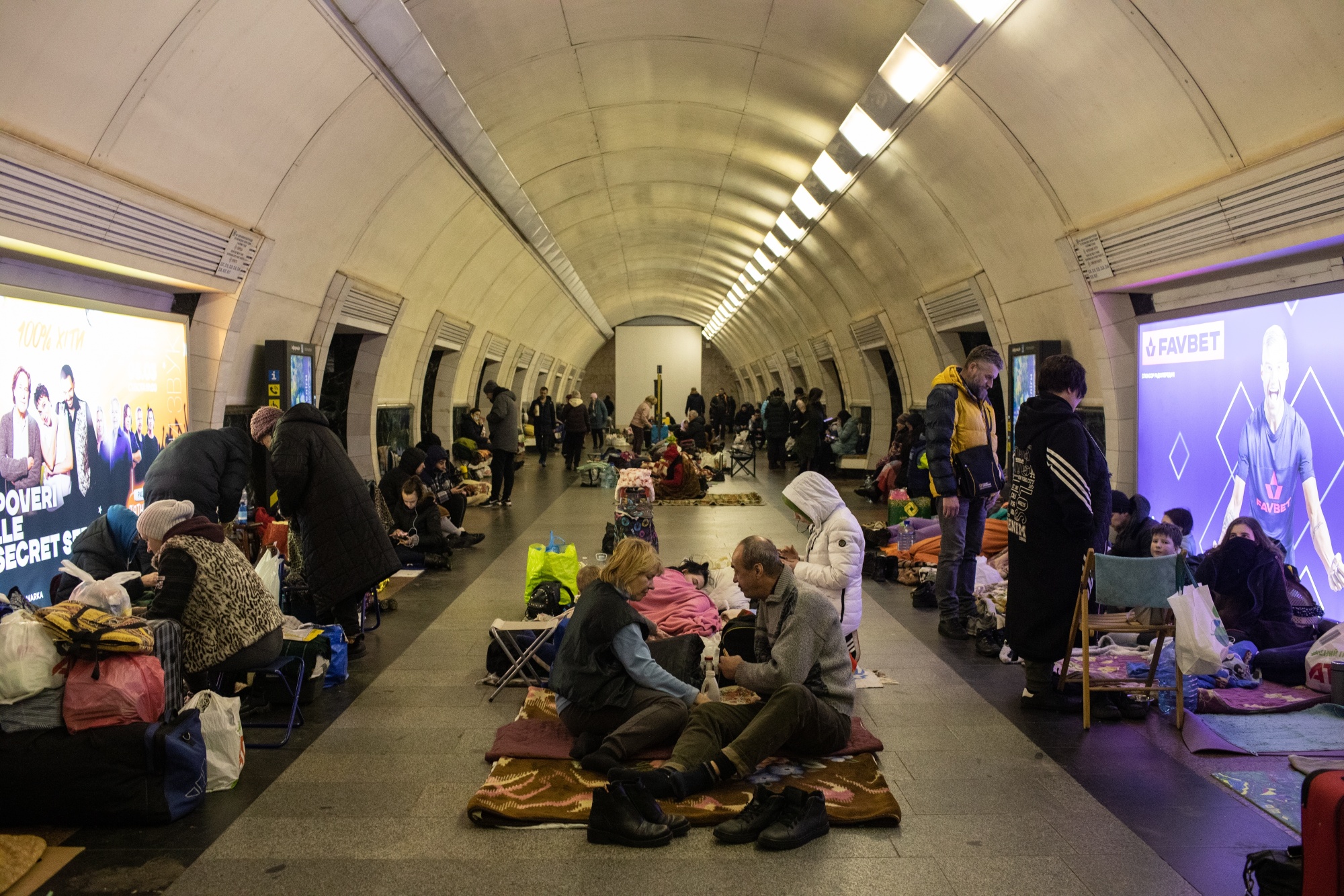 居民在2022年3月2日乌克兰基辅遭受俄罗斯炮击时躲在地铁站避难。摄影师:Erin Trieb/Bloomberg**喜欢晚间简报吗?**订阅Bloomberg.com,获取可信赖的、数据驱动的新闻,从独家订阅者专属通讯中获得专家分析。
