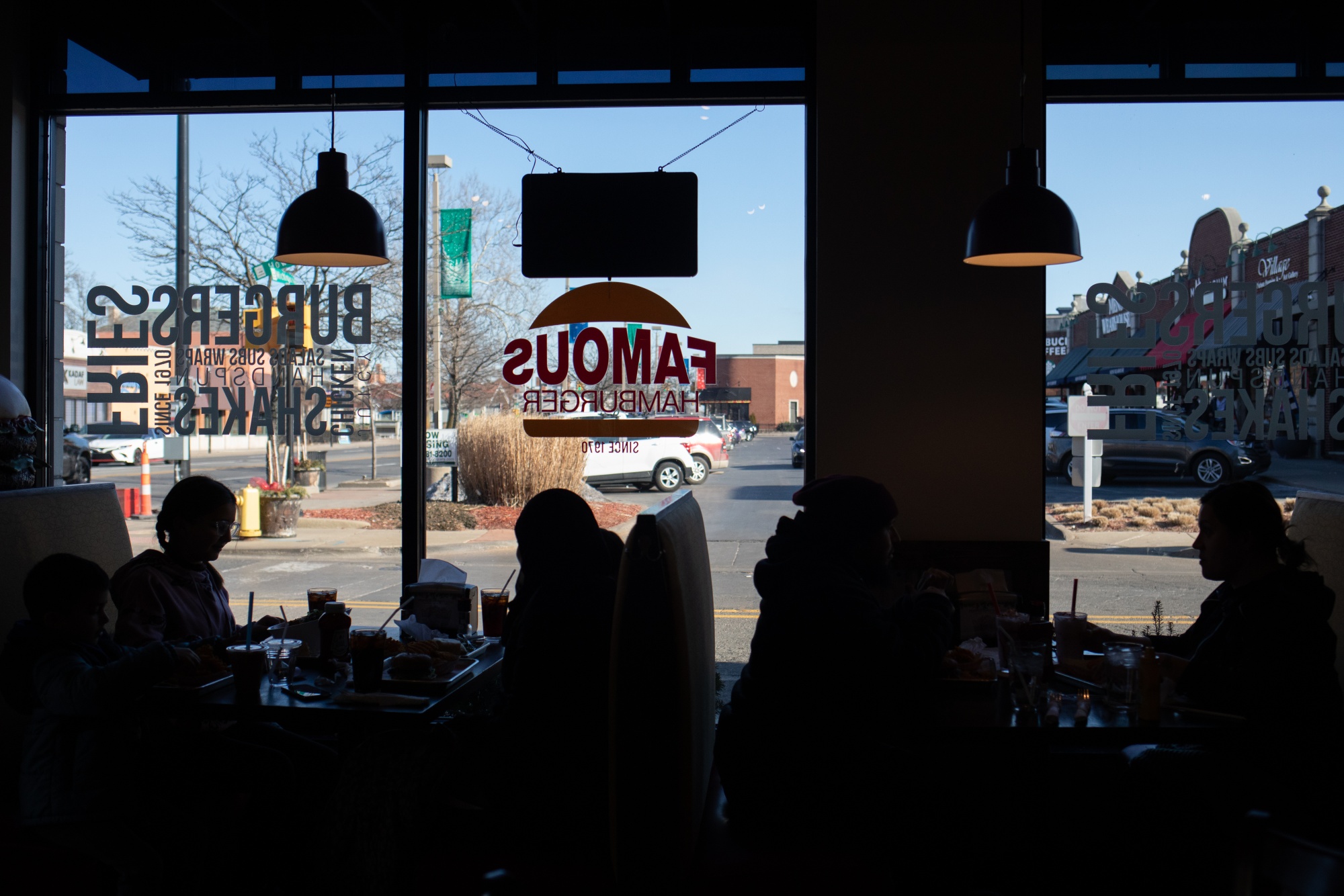 顾客在密歇根州迪尔伯恩的一家餐厅用餐。