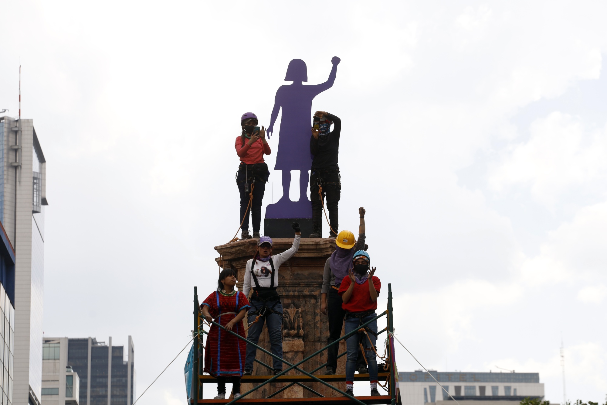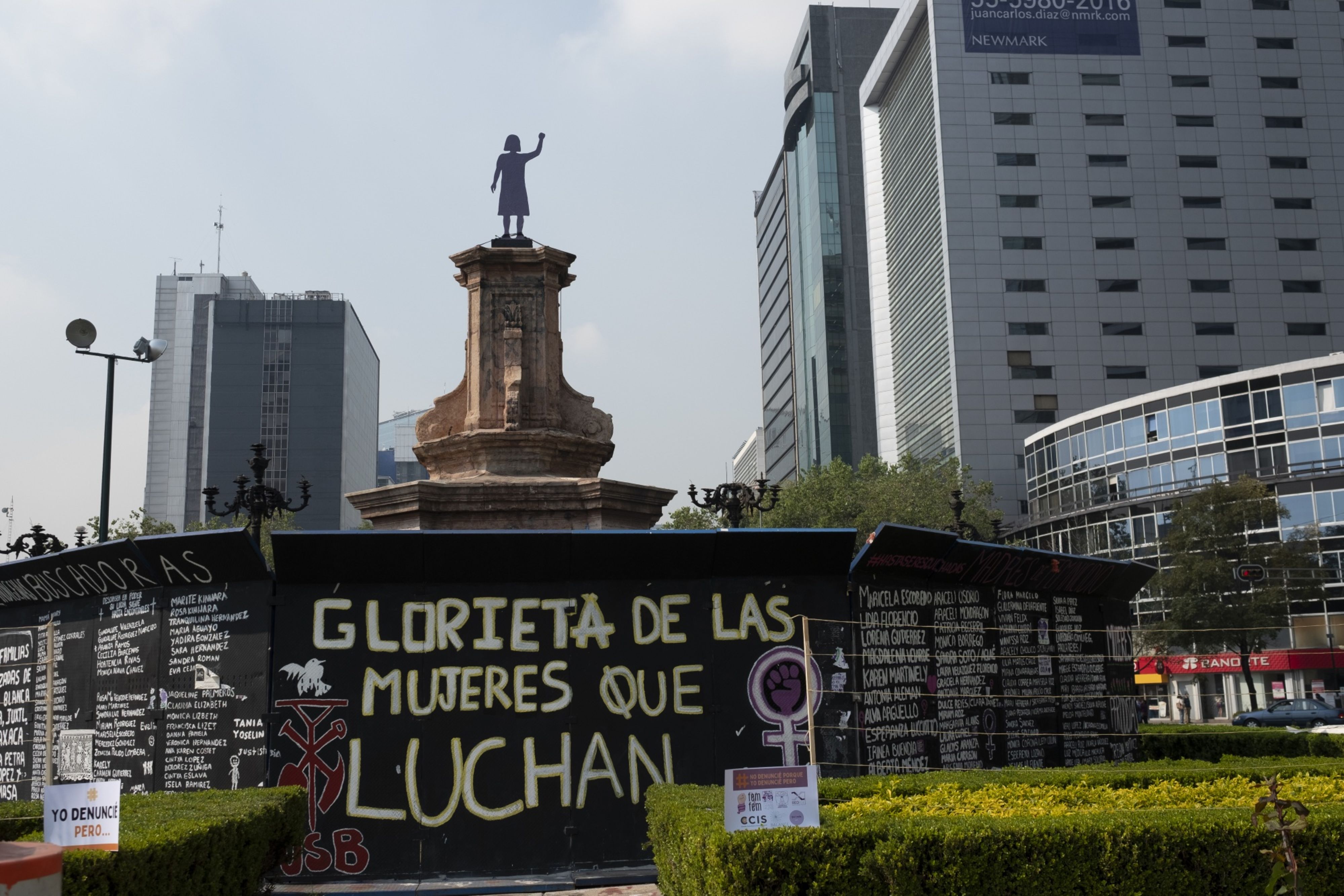 奋斗的女性环岛,现在被活动人士称为这个珍贵的地点。它已经成为墨西哥首都正在发生的女权主义起义的焦点。