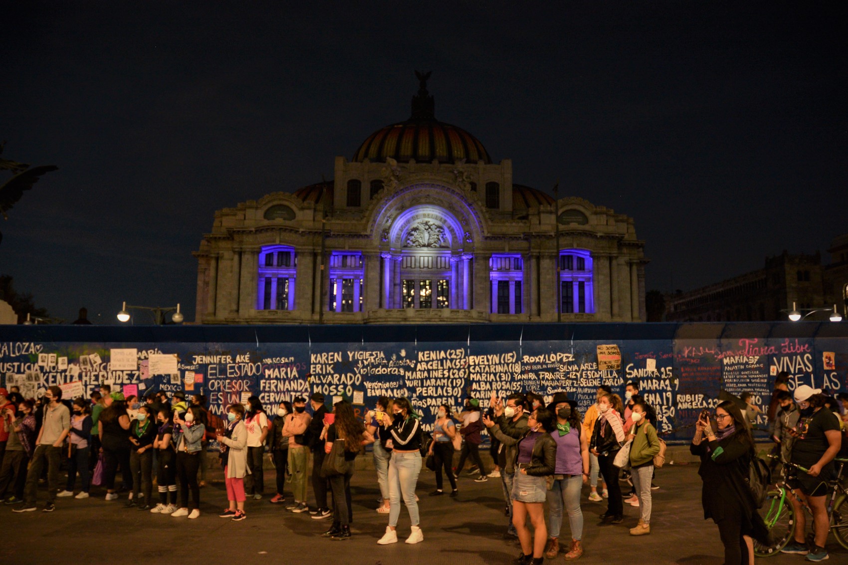 在贝拉斯艺术宫外,抗议者们在警察设置的屏障上涂写了成千上万受害者的名字,这是2021年3月8日国际妇女节示威活动的一部分。摄影师:Medios y Media/Getty Images South America政府也以武力回应。该市已经用金属栅栏围住了贝拉斯艺术宫等纪念碑和建筑,以阻止抗议者进入。在2021年国际妇女节之前,墨西哥城的国家宫周围竖起了一道10英尺高的金属围栏,墨西哥总统洛佩斯·奥夫拉多尔的发言人称之为“和平之墙”。(活动人士在围栏上涂写了成千上万受害者的名字,并将其改名为纪念之墙。)抗议者和活动人士谴责该市部署防暴警察进行遏制。国际特赦组织的一项调查发现,2020年在五次女权主义抗议活动中,警察存在多起侵犯人权的行为,包括使用过度武力、任意拘留和性暴力等行为,但没有一名警官或官员受到追责。